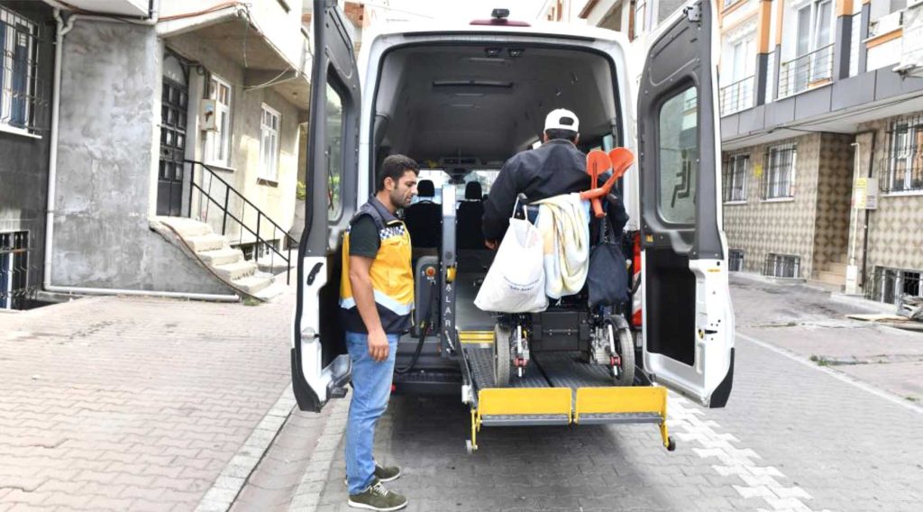 Esenyurt Belediyesi, 65 yaş ve üzeri engelli, hasta, tekerlekli sandalye kullanan vatandaşların hastanelere ulaşımını sağlıyor.