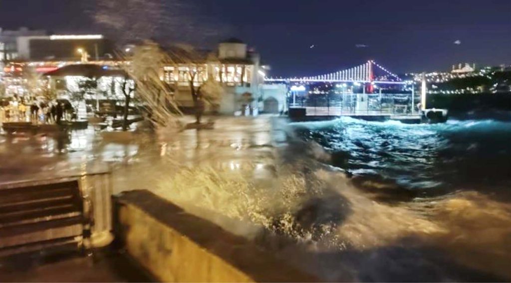 Meteoroloji Genel Müdürlüğü ve İstanbul Valiliği haftasonu Marmara Denizi’nde beklenen kuvvetli fırtına ile ilgili uyarılarda bulunmuştu. Cumartesi öğle saatlerinde başlayan fırtınanın pazar akşam saatlerine kadar devam edeceği öngörülen fırtına İstanbul’da etkisini gösterdi. Beşiktaş sahiline vuran dalgaların boyu 2, 3 metreye ulaşırken deniz seferleri de olumsuz etkilendi.