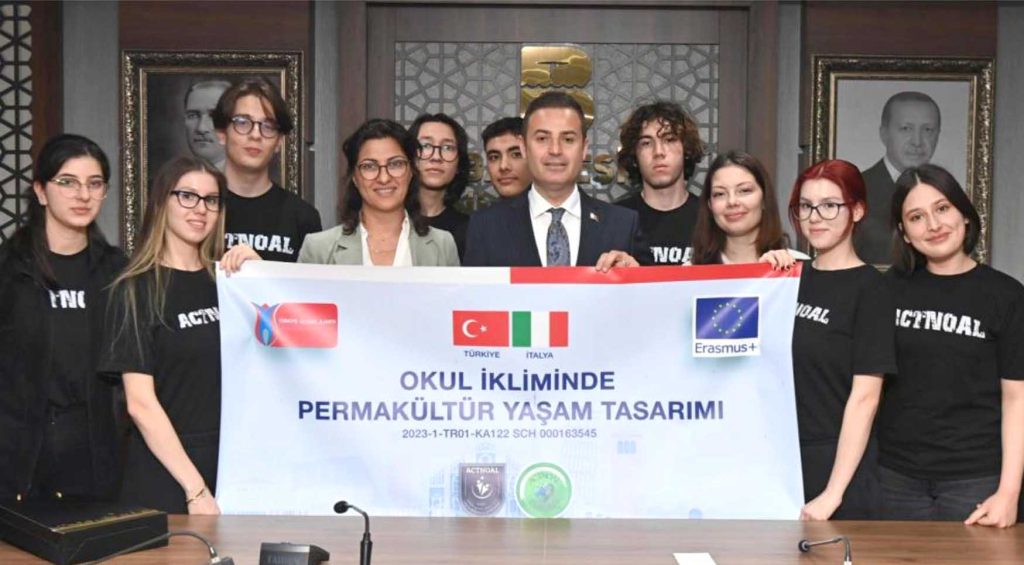 Albay Cafer Tayyar – Nuran Oğuz Anadolu Lisesi Okul Müdürü Ramazan Konakbay, Proje Koordinatörü Selvihan Dertli, proje ekibinde görevli öğretmenler Hasan Salih Gündüz, Canan Aydın ve Erasmus+ projesini hazırlayan öğrenciler ile birlikte Balıkesir Büyükşehir Belediye Başkanı Ahmet Akın’ı ziyaret etti. Okul Müdürü Konakbay ve öğrenciler, Başkan Ahmet Akın’a Erasmus+ İtalya iş birliği ile geliştirdikleri “Okul İkliminde Permakültür Yaşam Tasarımı” projelerinin tanıtımını yaparak yerel paydaşlarla ortak girişim oluşturmak üzere bilgi verdi. Kendisini ziyarete gelen gençlere teşekkür eden Başkan Ahmet Akın, gençlerin eğitim hayatını her zaman destekleyeceklerini belirterek Balıkesirli gençlerin uluslararası platformlarda şehri temsil etmelerinden mutluluk duyduklarını söyledi.